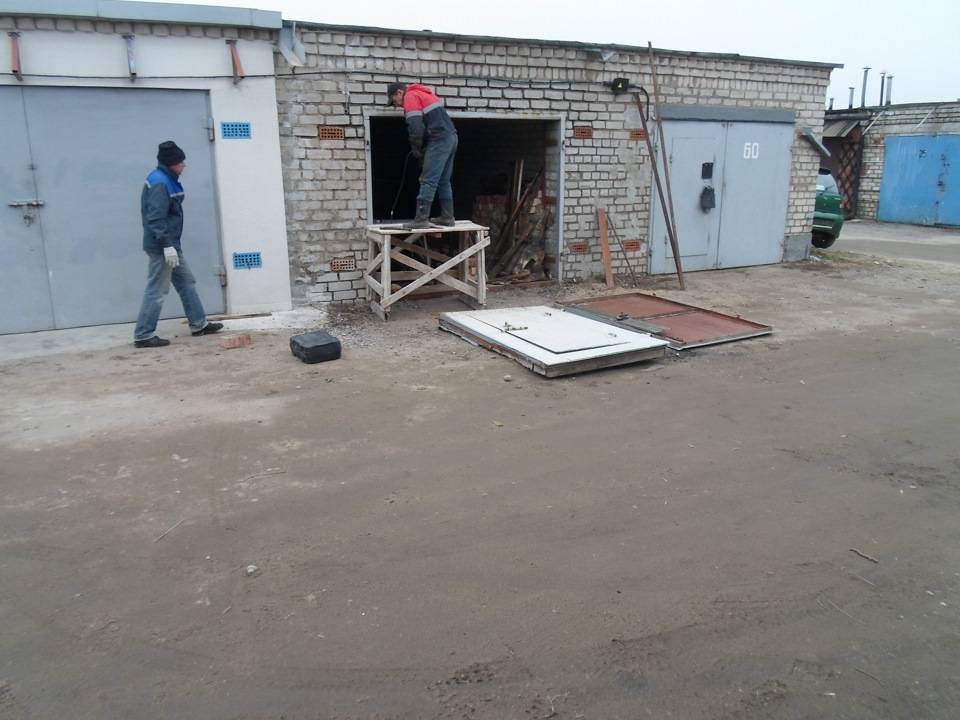 Некоторые гаражные умельцы сразу посоветовали разборку верхней части проёма, (уменьшить количество рядов кирпича – общепринятый подход), заново обварить раму, таким образом, увеличив высоту проёма. На самом деле поднять всю верхнюю часть на 14 см. (2,5 ряда кирпича) очень сложно, но этого и не требовалось. Как была решена проблема.