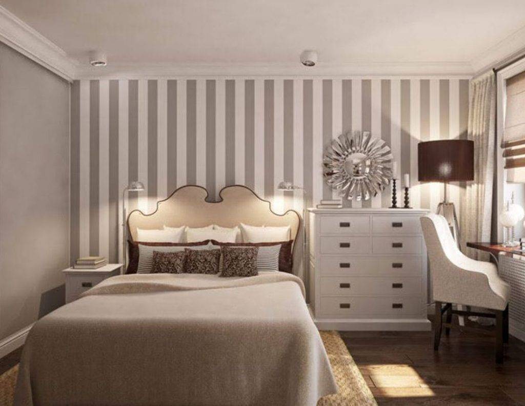 Например, для модного дизайна перед поклейкой обоев двух видов в спальне, определяются с масштабом помещения. В миниатюрных комнатах желательно предпочесть полосатый рисунок, а в крупных возможны другие комбинации.
