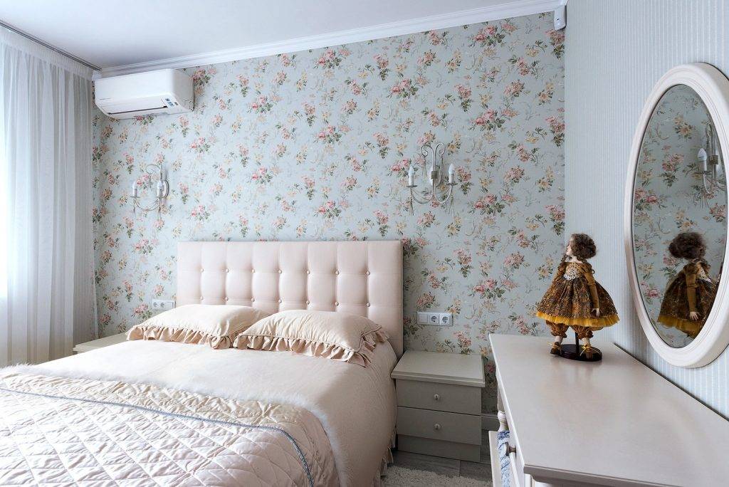 Обои с цветочным рисунком подходят для стиля Прованс, современного и классического. Располагают его по-разному. Комбинируют цветочный принт с однотонными рулонами или в вертикальную полоску.