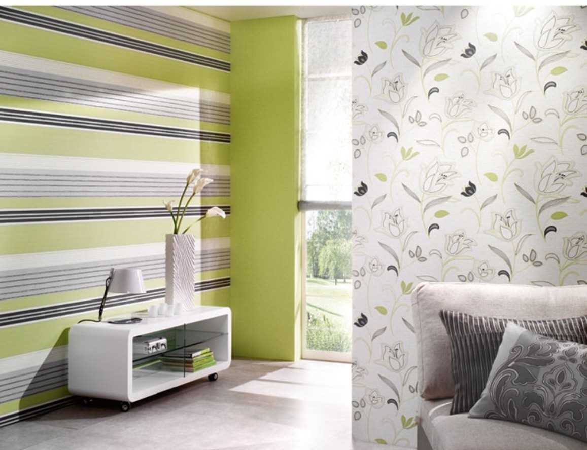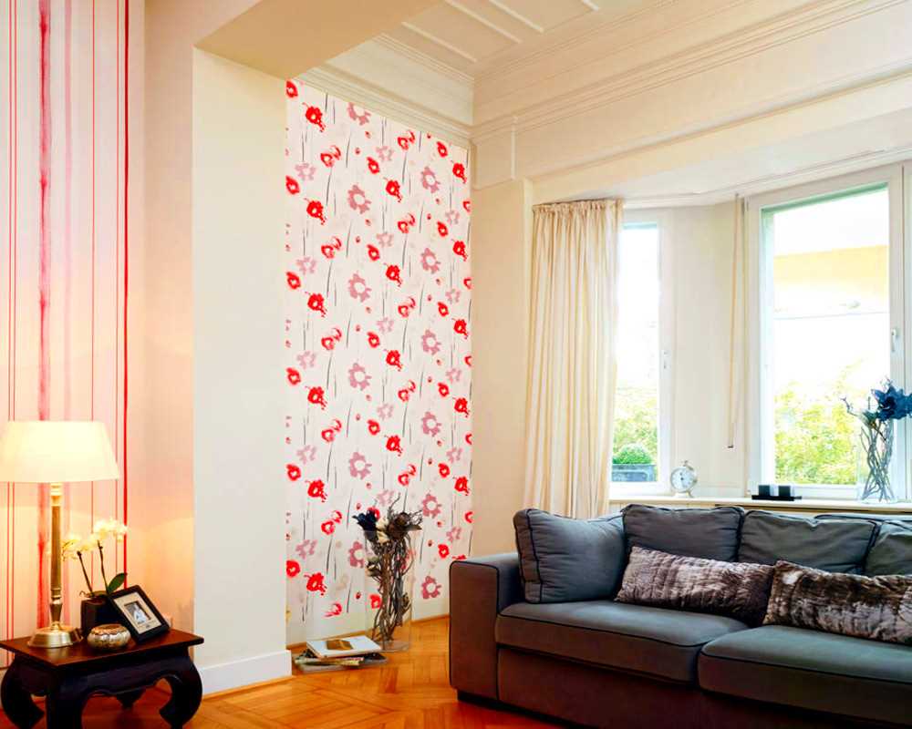 Фото как комбинировать обои в полоску и цветы в гостиной
