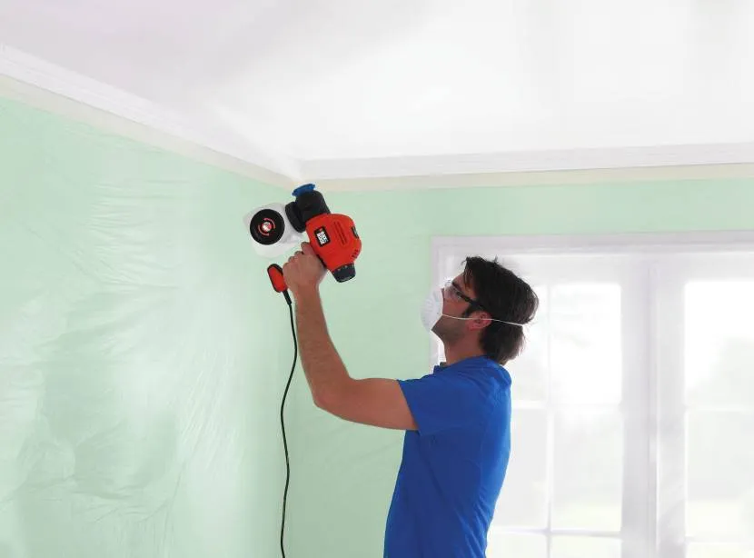Окраска потолочной плитки при помощи краскопульта