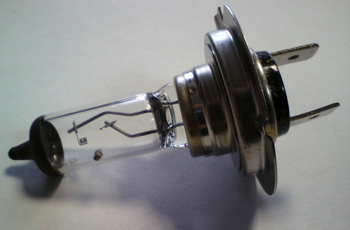- Ближнего света. Обычно это галогеновый источник света с мощностью 55 Ватт. Внешний вид: конусообразная форма, наличие двух электрических контактов.