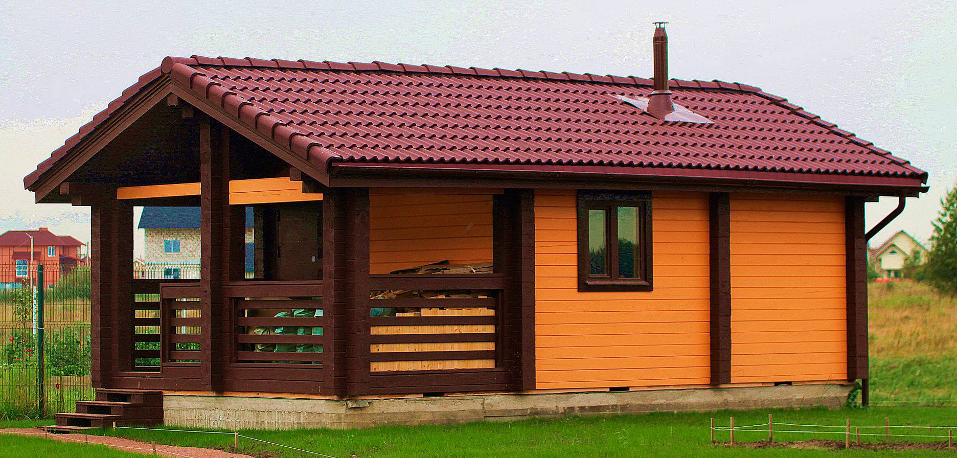 - Блокхаус. Каркасная баня, фасад которой облицован этим новейшим материалом, внешне выглядит как бревенчатая конструкция. Отличить такую постройку от настоящего сруба практически невозможно.