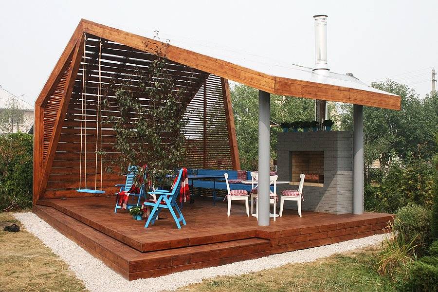 Существует множество разновидностей беседок для дачи: открытые/закрытые, небольшие/просторные; с одно-/многоскатной крышей. Разнообразие дизайнов такое множество, что их довольно сложно классифицировать.