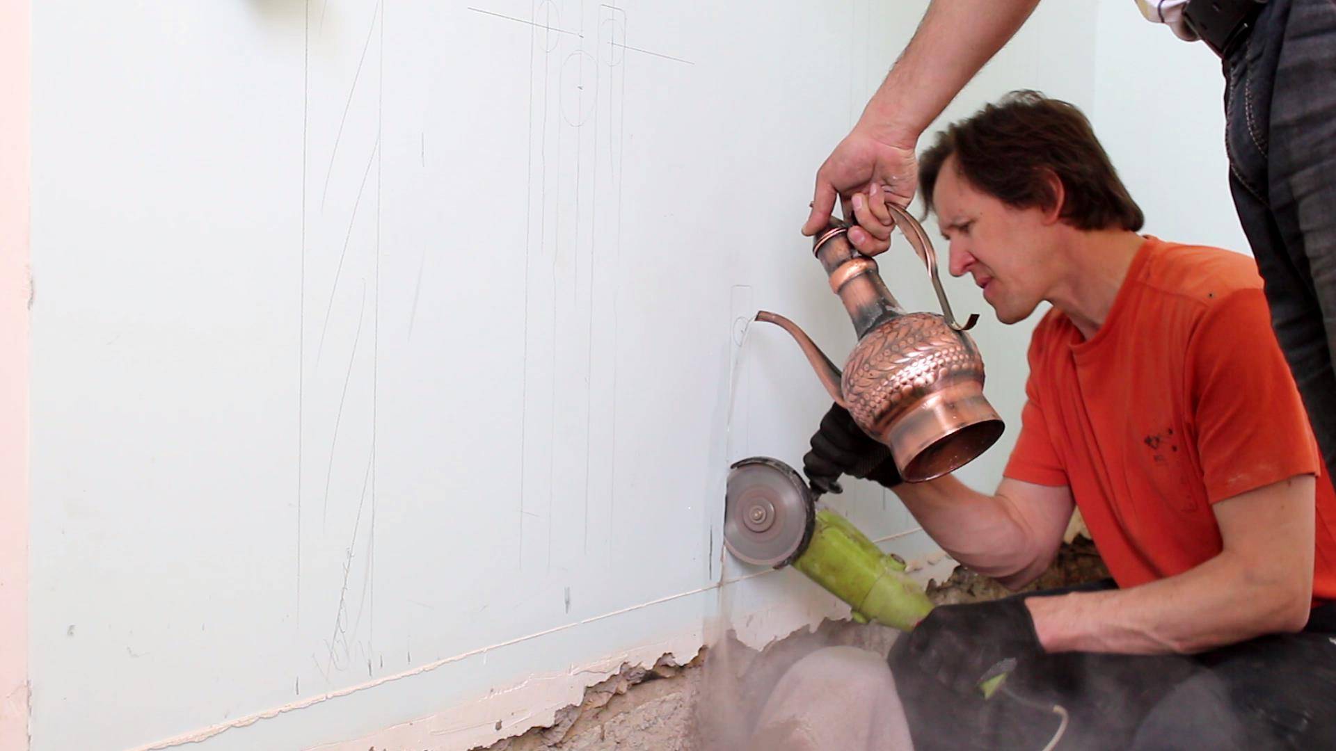 - Наиболее распространенным и доступным способом борьбы с пылью является смачивание поверхности, на которой предстоит сделать штробу.