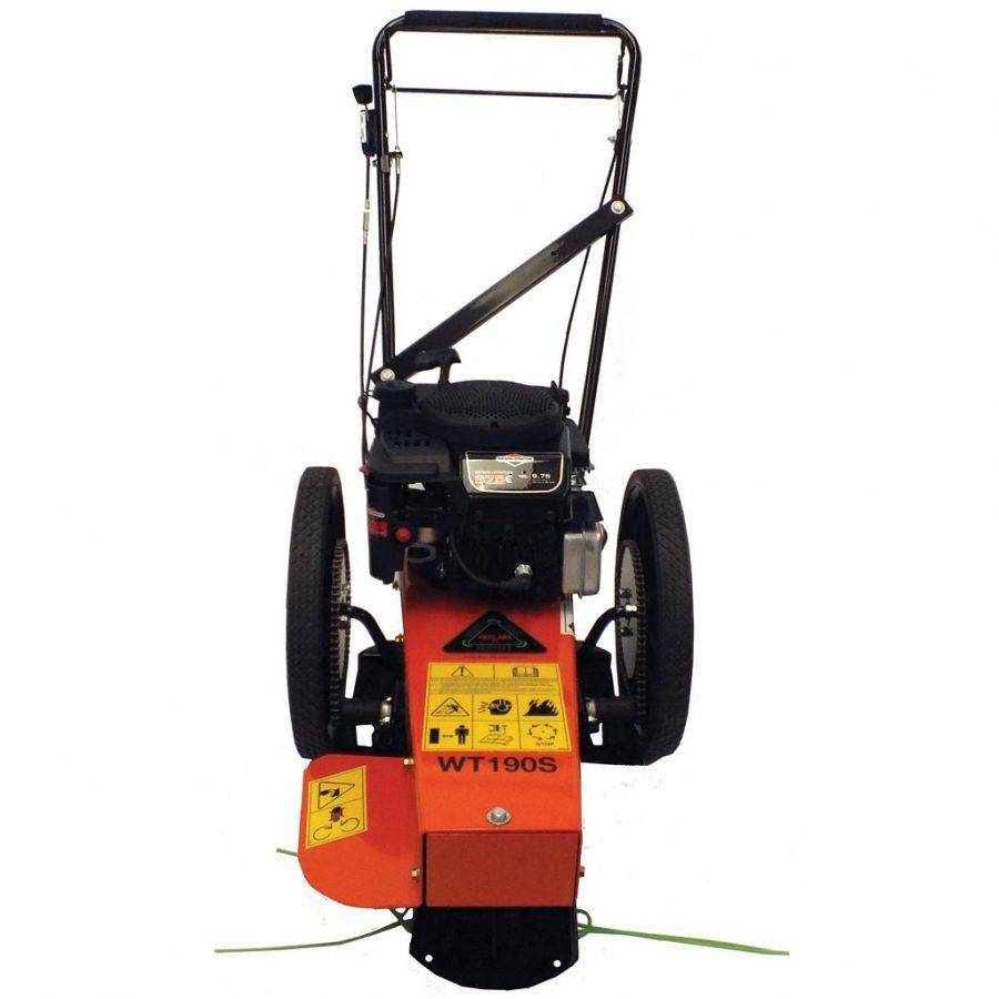 Тяжелый колесный триммер весом 35 кг подходит для скашивания молодой и жесткой растительности, сорняков, а также кустарников. Ручка и высота среза регулируются. Мощность двигателя составляет 6 л.с. В качестве режущего элемента могут использоваться леска или триммерный нож. Ширина скашивания – 61 см.