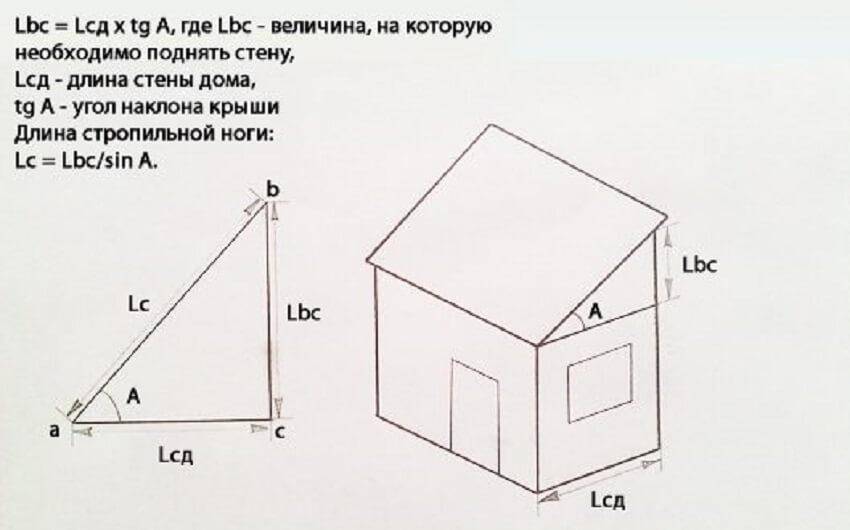 Формула расчета уклона кровли