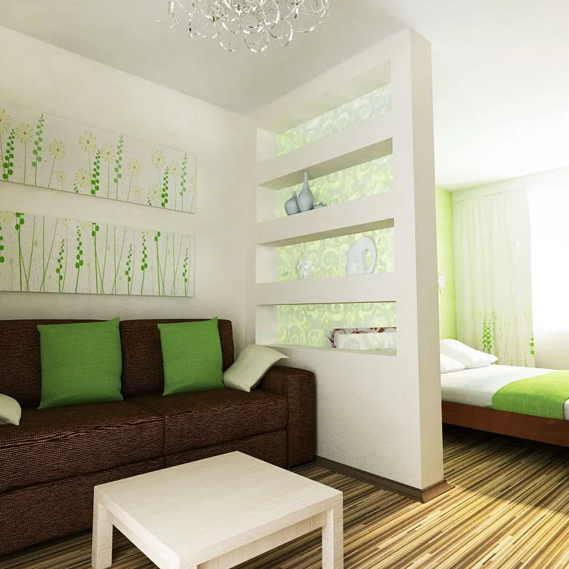 Фото удачных примеров зонирования в небольшой комнате
