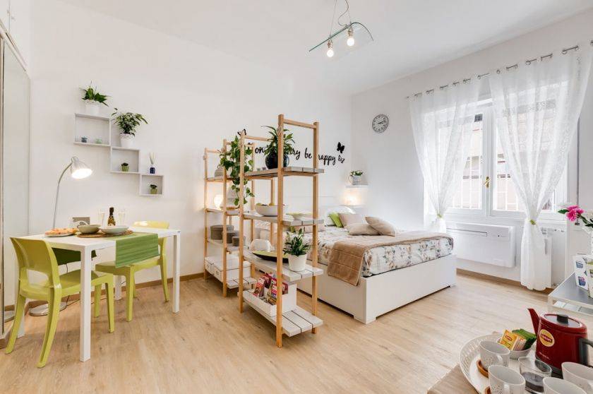 Разделение однокомнатной квартиры стеллажом на зоны