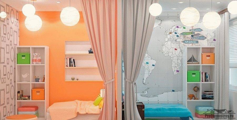 Зонирование детской комнаты шторами