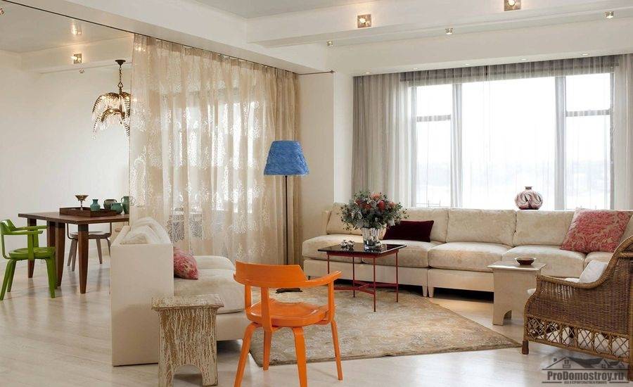 Зонирование гардинамиПространство в гостиной разграничивают так: