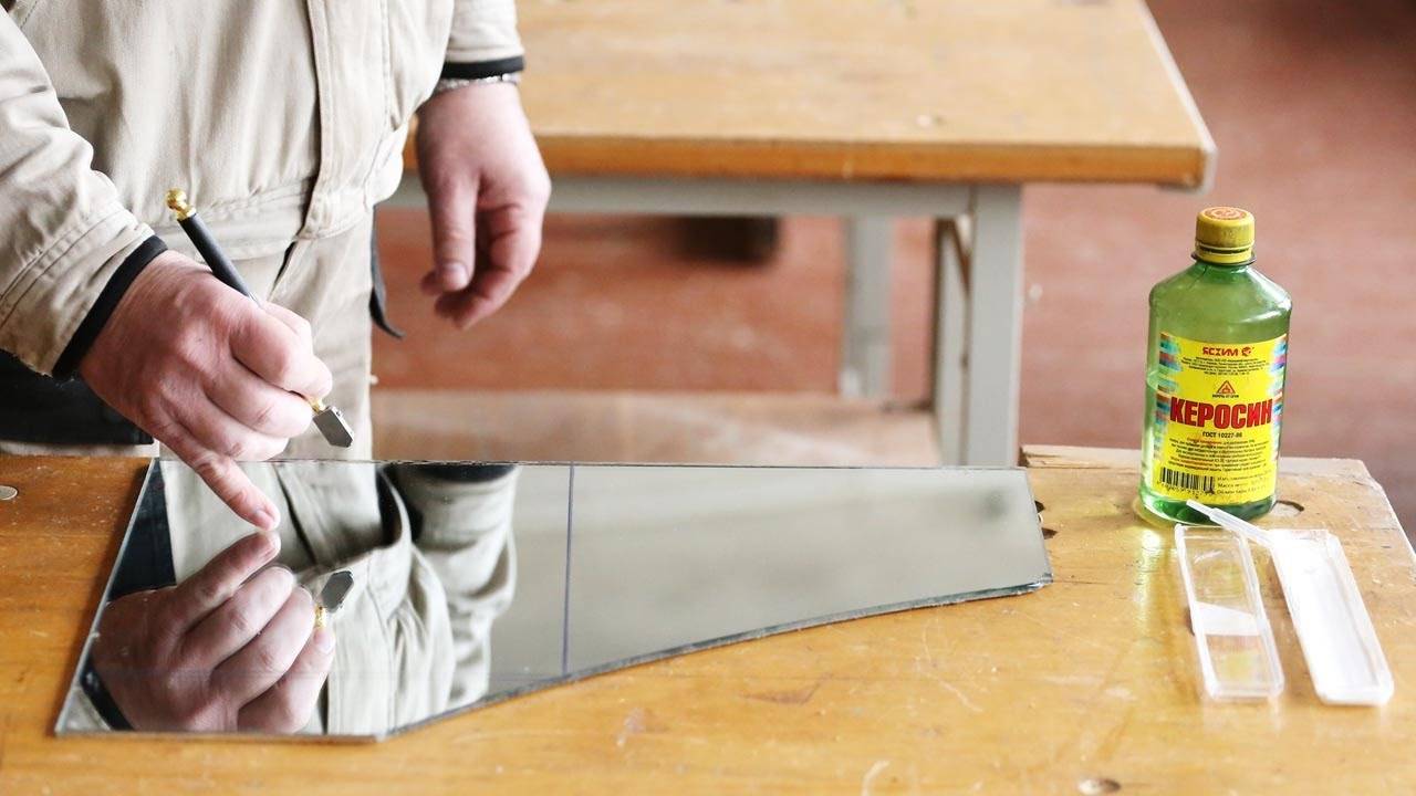 Если же стекло ранее был в использовании, то перед тем как резать материал стеклорезом, на его подготовку потребуется потратить немного больше времени. В первую очередь такую поверхность потребуется хорошо помыть, используя специальные средства для очистки стекол. Затем следует провести тщательный процесс обезжиривания. Как вариант можно воспользоваться керосином. Для этого пропитанной тряпкой в керосине, необходимо тщательно протереть стекло и подождать до полного его высыхания.