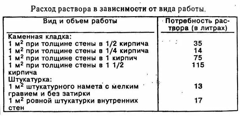 Расход раствора в зависимости от вида проводимых работИсточник minkor.ru
