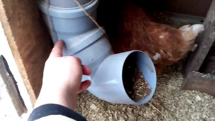 Для подачи зерна или комбикорма обычно используют автоматические кормушки, которые сделаны так, что исключают потерю пищи и в то же время животные обеспечены необходимым количеством.
