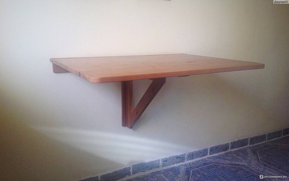 Рабочая поверхность откидных версий монтируется к стене с помощью шарнирного крепления с одной и более петлями. Это предоставляет возможность без труда сложить или разложить конструкцию.