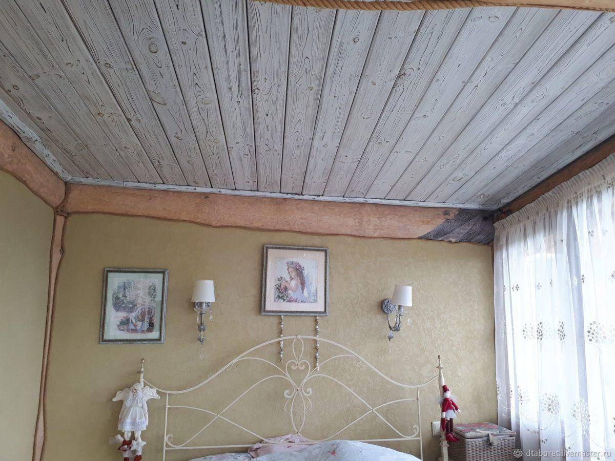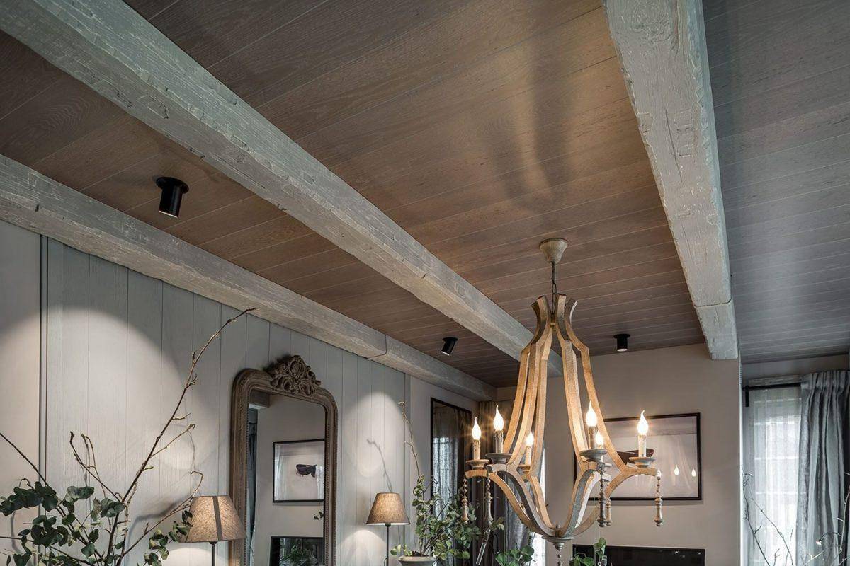 Но при монтаже потолочной поверхности выбранным материалом, нужно учитывать такой момент, как толщину доски — не более 20 мм. Помните, что этот материал должен иметь качественную обработку. В идеале, если балки от завода защищены пропитками, которые предупредят появление паразитов и плесени.