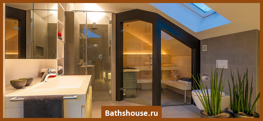 Реже баню располагают на чердаке дома. Так как помещение темное и нужно дополнительное утепление крыши, монтаж полов.