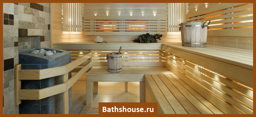 Внутреннюю отделку кабины выполняют из влагостойкой древесины: лиственницы, ольхи, липы, осины