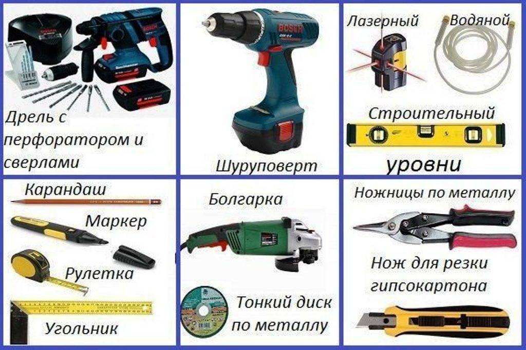 Инструменты, которые понадобятся во время возведения стен из гипсокартонных листов.