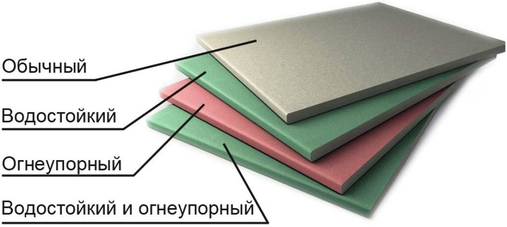 Гипсокартон подразделяется на виды в зависимости от характеристик: