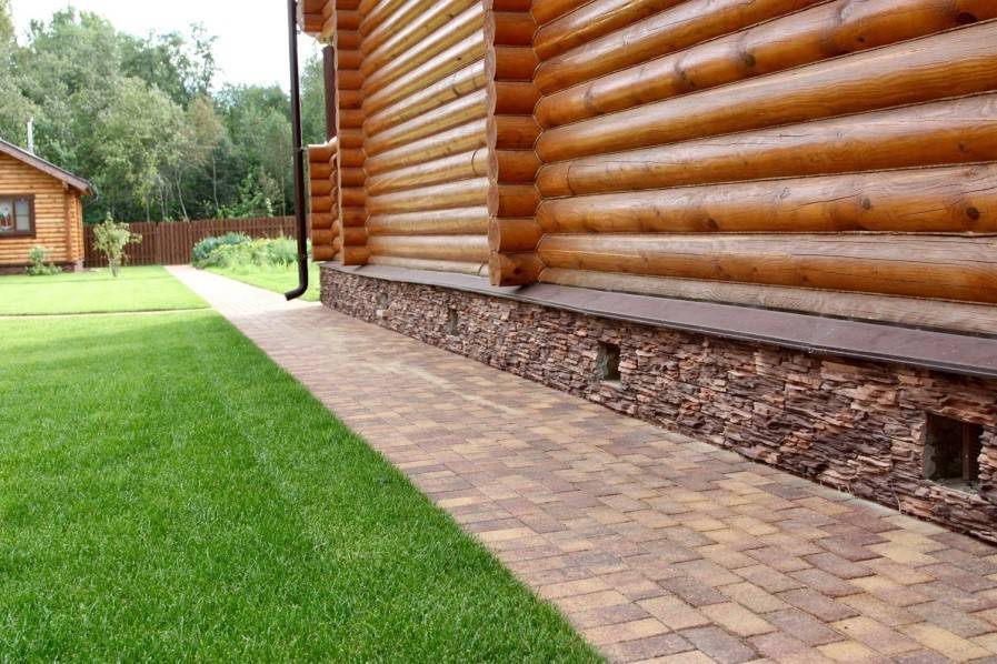 - Декор. Красивая защитная полоса вокруг здания никогда не испортит его экстерьер. Она качественно дополнит дизайн и придаст участку некую привлекательность.