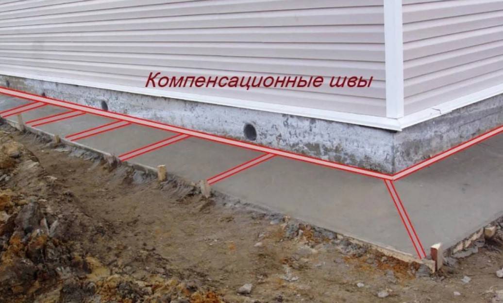 Еще одно правило для такой отмостки – это необходимость наличия между ней и строением небольшого деформационного зазора на случай температурных расширений материала. Чтобы не оставалось открытых щелей, их потом заполняют эластичными материалами, после чего отделывают.