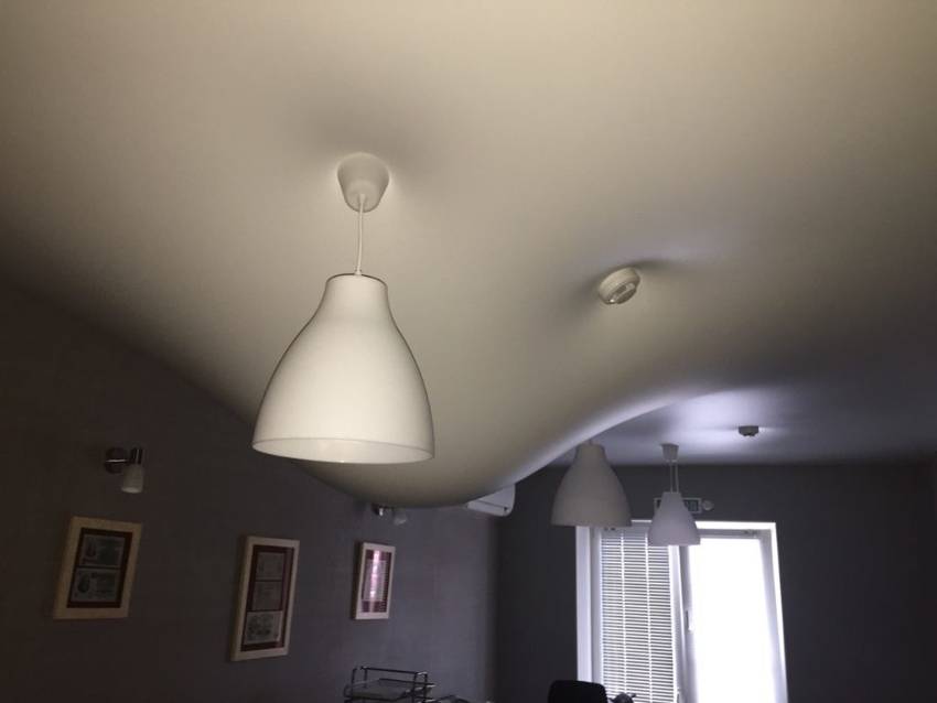 - большой размер потолка сокращает допустимую нагрузку на полотно;