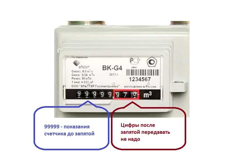 Обратите внимание, что берутся цифры до запятой. Возьмите показания прошлого периода или первичные данные, если прибор был установлен в прошлом месяце