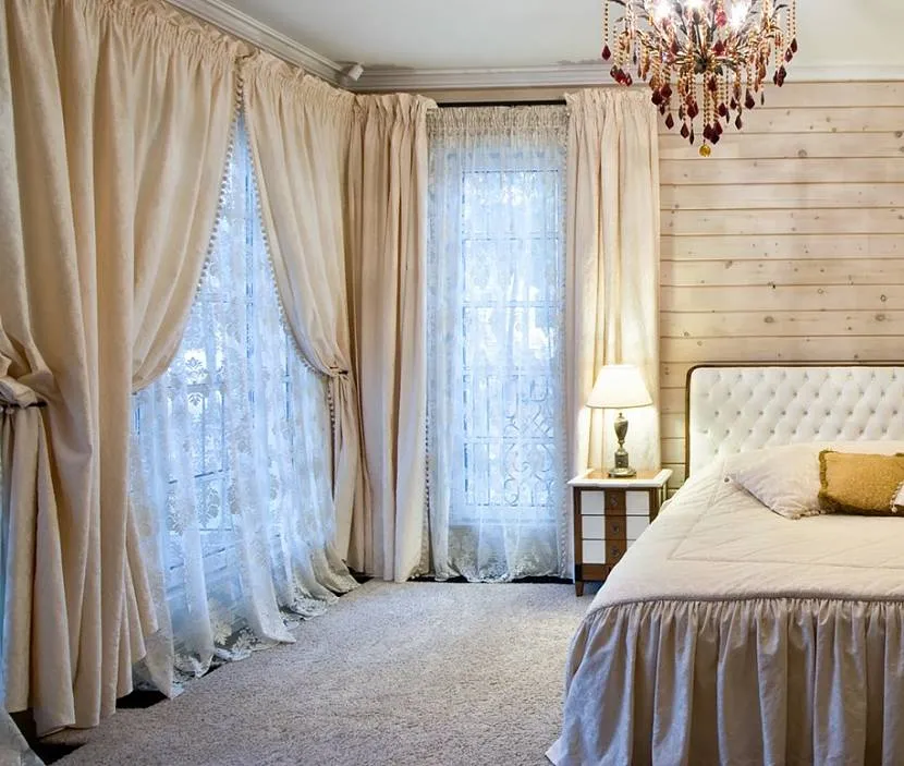 Штора здесь играет большую роль, поэтому важно, чтобы она подходила по дизайну, создавала уют и при этом не терялась на фоне комнаты.
