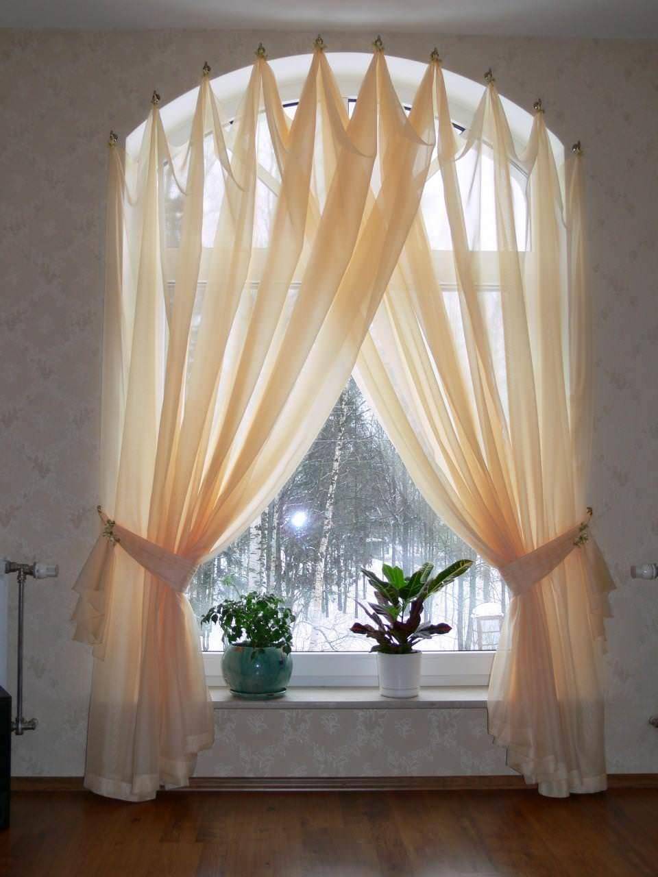 Узкие и арочные гардины в основном служат не столько для функциональности, сколько для декора. Какие подбирать по длине тоже зависит от стиля комнаты и желания владельцев. Арочные окна и арочные дверные проёмы предполагают использование таких же занавесок, ведь весь дизайн помещения и цветовая гамма интерьера подбираются комплексно. Арочные занавески могут быть разной плотности, но не слишком тонкие и не очень плотные, средней толщины ткани. Они могут крепиться на люверсы, завязки, петли, клипсы, гибкий карниз или кулиски – характер и красота штор от этого не пострадают, а только придадут изюминку в ваши арочные владения.