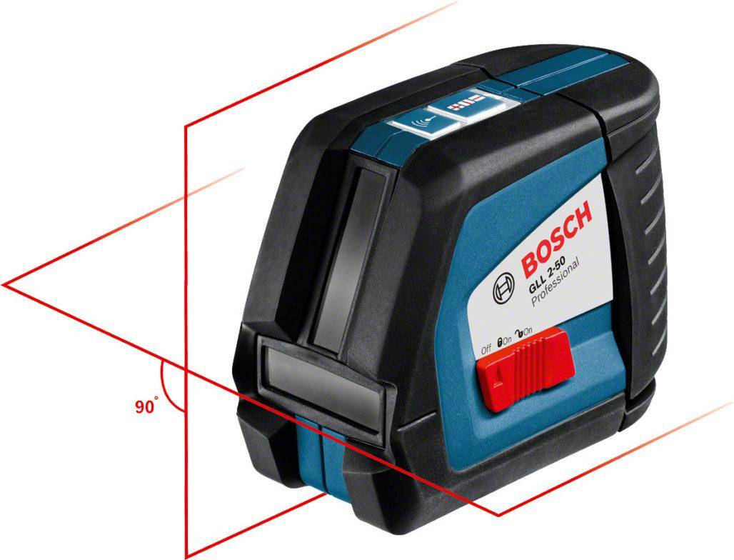 Это качественный, профессиональный инструмент, известный многим отделочникам. Он поможет правильно и быстро уложить плитку. Два боковых лазера проецируют лучи под углом в 90 градусов, а в это время между ними строится биссектриса третьим лазером, который находится по центру.