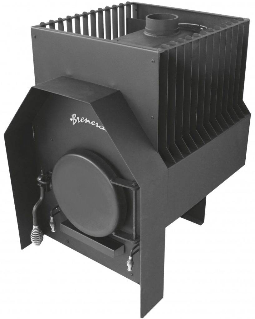 Устройство компактное и легкое, выход дымовой трубы прямой. Камни закладываются не только сверху, но и в карман сзади корпуса. Общая масса булыжников может составлять до 40 кг. Печь имеет топку для дров длиной до 450 мм и сравнительно скромную мощность в 12 кВт. Она достаточно долго прогревает камни, но после этого наблюдается очень хорошая тепловая инерция.