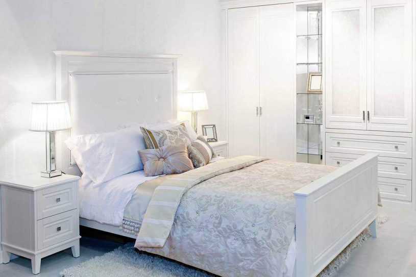Достоинство белого в том, что он сочетается с любыми цветами, поэтому при оформлении спальни всегда можно добавить любимые тона, например, бросить на постель плед оттенка фуксии
