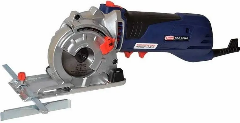 Компактность устройства вкупе с его легкостью позволяет разместить его не только в небольших мастерских, но и дома. При этом внутри небольшого корпуса спрятан мотор мощностью 1200 Вт, способный достичь скорости вращения в 4800 оборотов в минуту. Диаметр диска – 210 мм, т.е. на эту модель можно будет найти запасной пильный диск. Глубина реза – 45 мм.