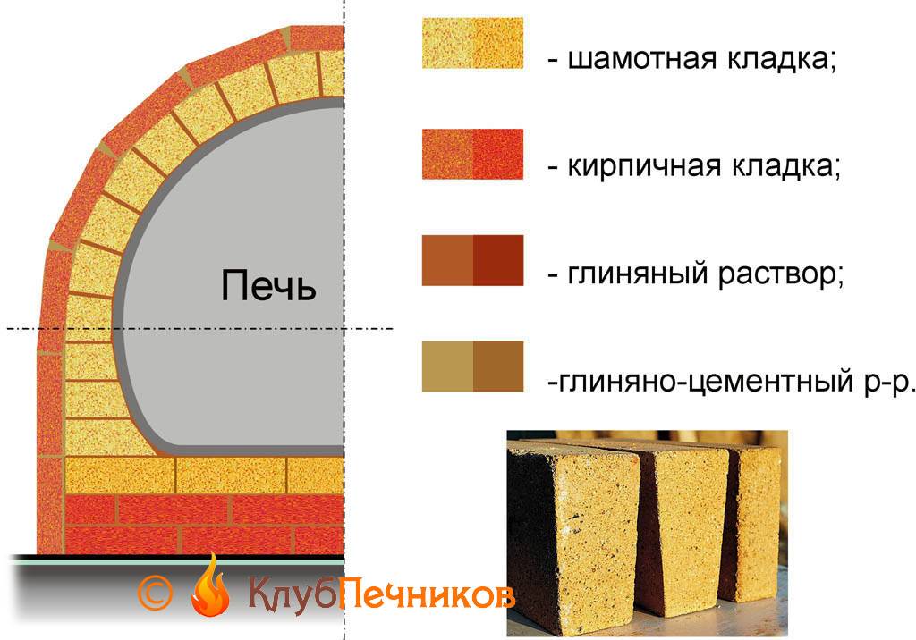 «Шамотный». Выпускается различными предприятиями, например, Белокаменским заводом на Украине, Сухоложским заводом в Перми. Рекомендуется использовать в строительстве тех частей печи, которые непосредственно касаются пламени.