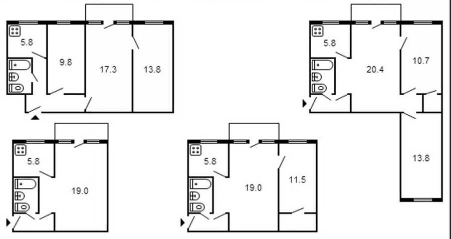 Вот так выглядят типовые планы, разработанные для хрущевок.
