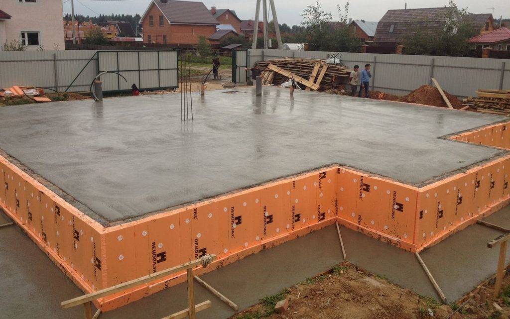 По мнению большинства профессионалов и пользователей, это самый надежный вид основания. Фундамент из железобетонных плит успешно справляется с задачей обеспечения равномерного распределения нагрузки с двух сторон.