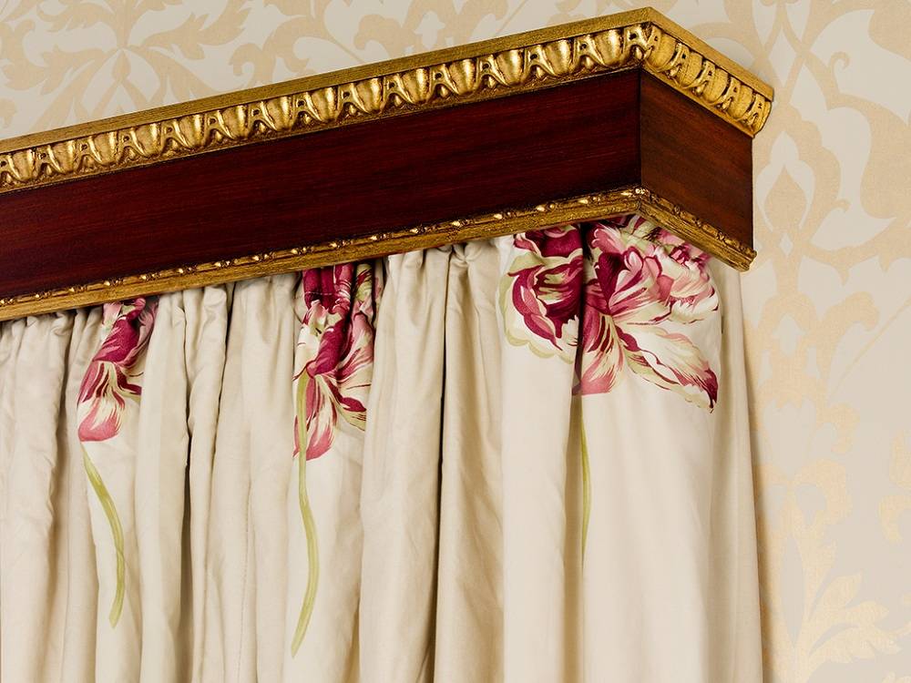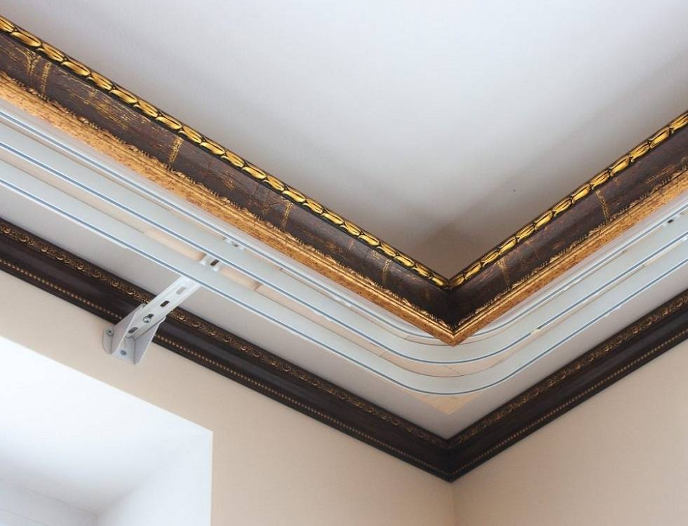В производстве используют различные материалы. Достоинство — разнообразие дизайна, к любому стилю можно найдется нужное изделие. Настенный карниз также популярен благодаря простоте в установке.