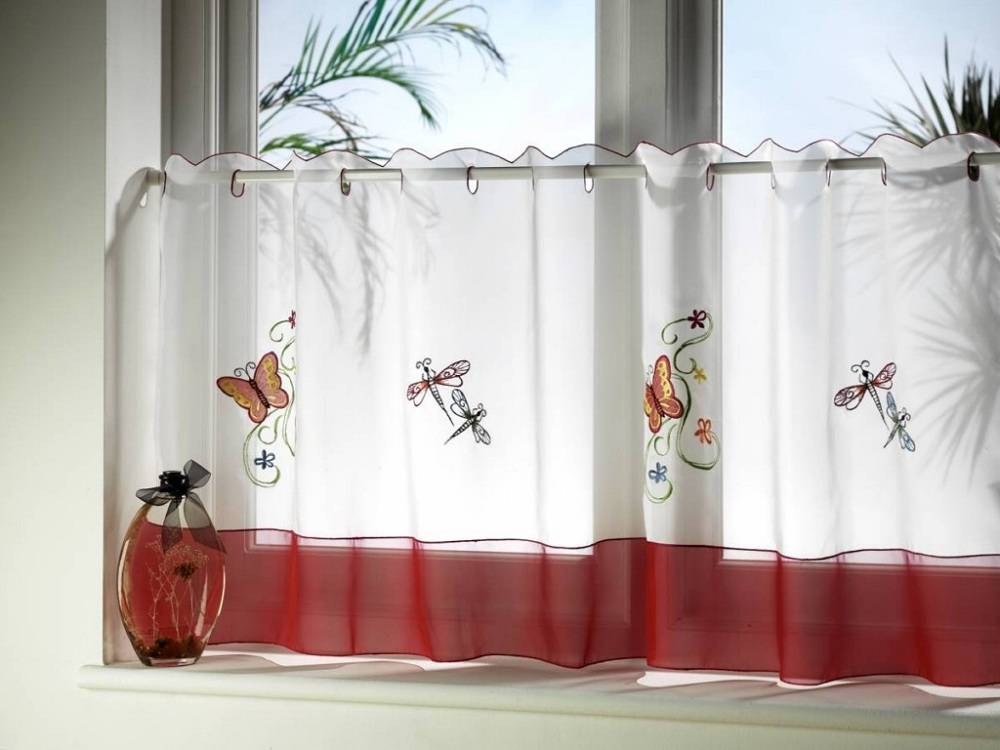Данная разновидность подвеса представляет собой легкий регулируемый круглый или прямоугольный карниз, который монтируется непосредственно на раму окна. Такой подход очень уместно смотрится в классических и деревенских кухнях. Особенно хорошо использовать подобный подвес, если непосредственно под окном находится мойка. Это позволит уберечь занавеси от излишнего загрязнения и брызг. Витражные карнизы изготавливаются из металла или пластика, а монтируются с помощью небольших кронштейнов или самоклеящихся элементов.