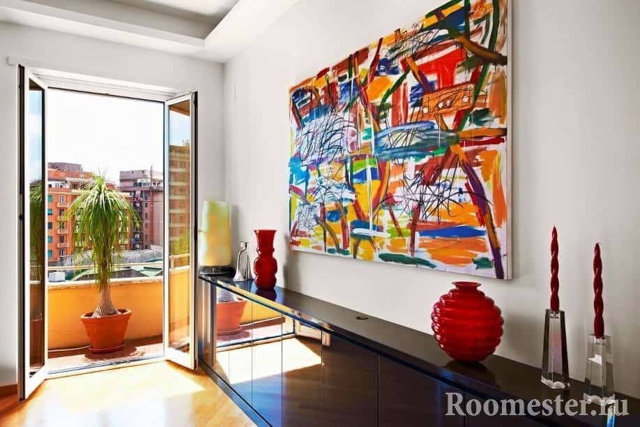 Значение имеет местонахождение, а также сюжет живописи. Если полотно будет размещено над предметом мебели, то заранее нужно определиться с его размерами. Оптимальным соотношением ширины полотна и спинки дивана считается 1:2. Если полотен с изображением не одно, а два или три, то свободного пространства должно быть не менее 1/3 от размеров мебели