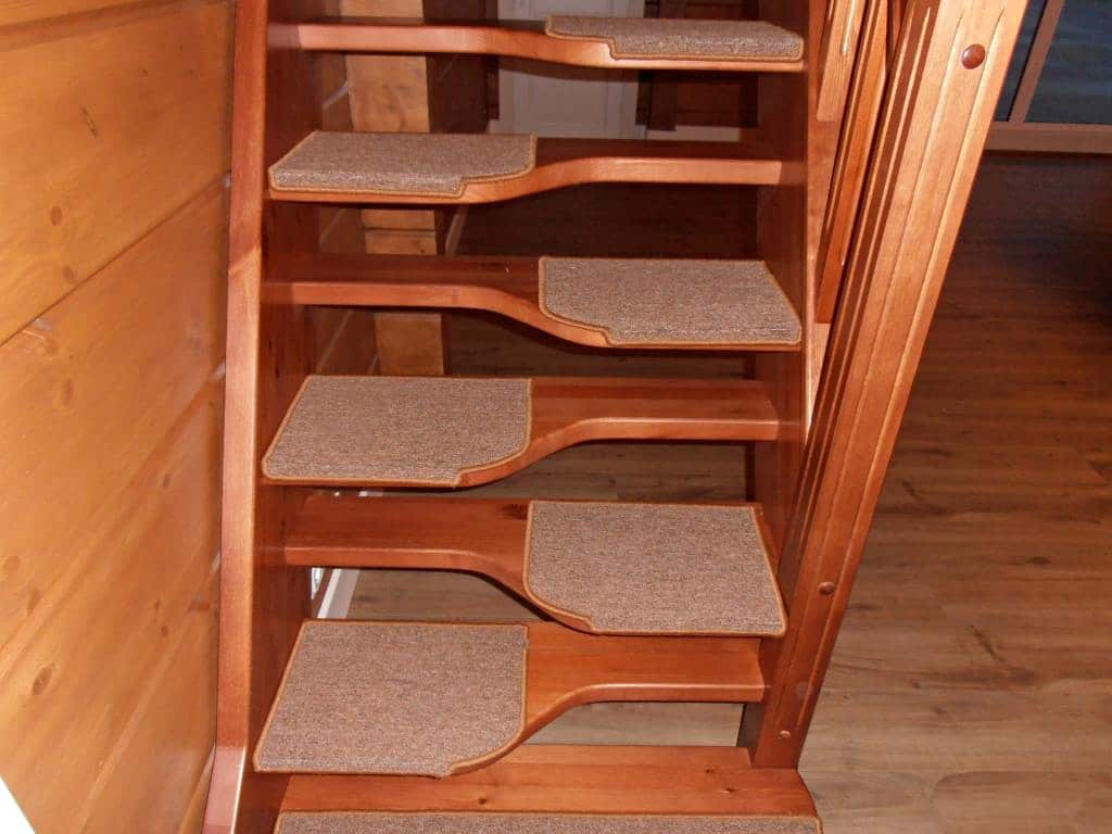 - Ковролин. Теплое, уютное покрытие. Лестницы с ковровым покрытием предлагают дополнительную звукоизоляцию и теплоизоляцию Можно купить готовые накладки на ступени.