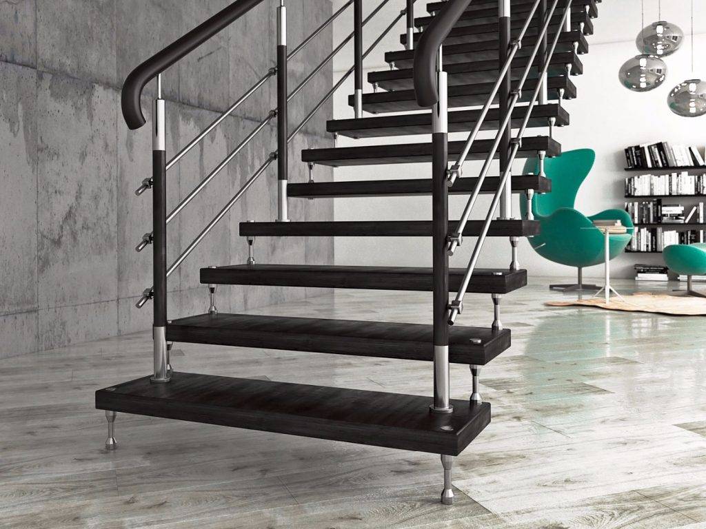 Ступени у таких лестниц внешне весьма лаконичны, могут быть открытого или закрытого типа, а за счет крепления на болтах или штырях являются невероятно надежными и прочными. Главным преимуществом таких лестниц считается возможность быстро их разобрать, они поддаются реконструкции и изменению размеров.