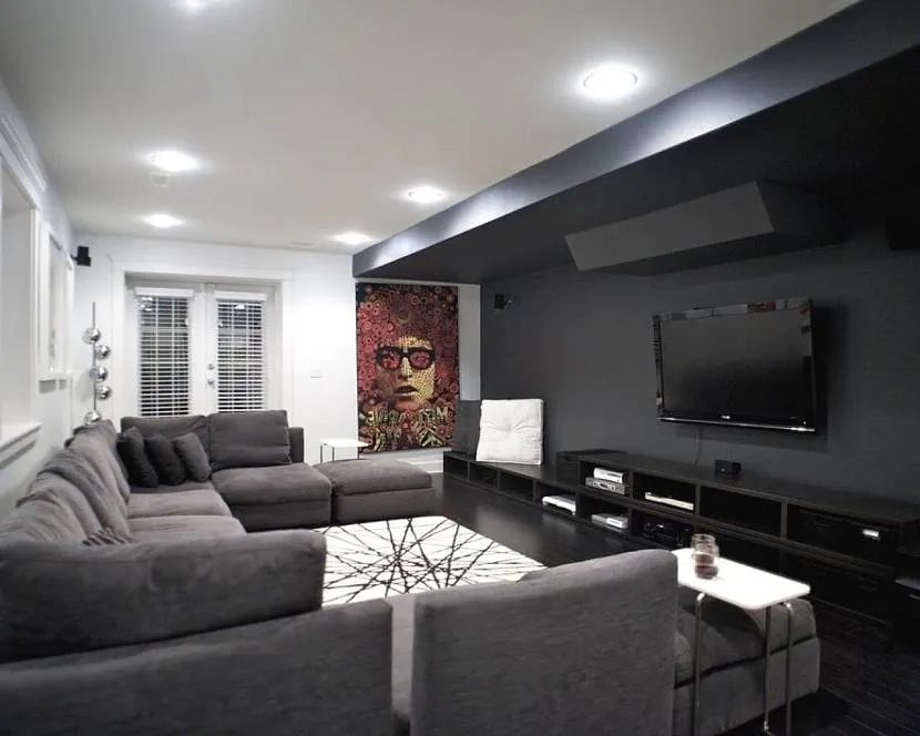Белая гостиная с черной мебельюИсточник Дизайн гостиной