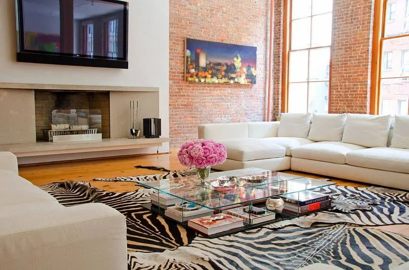 Гостиная с ковром под зебруИсточник Pinterest