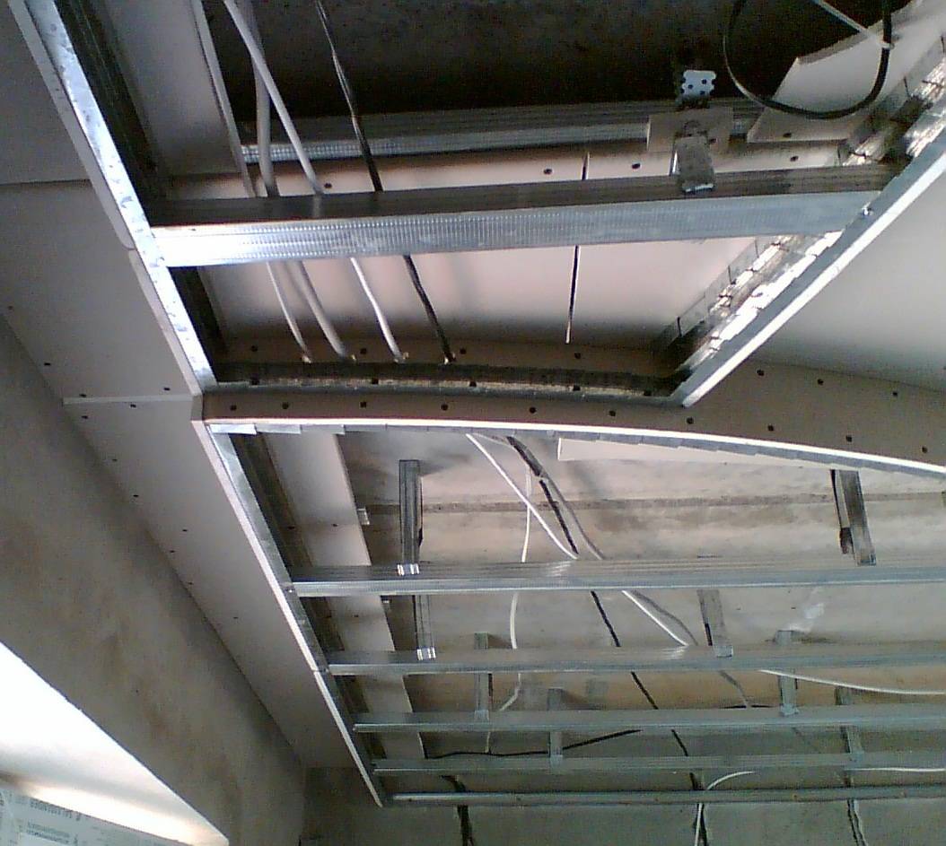 Металлический каркас выполняется из профилей и стыковочных элементов, применяемых для гипсокартонных подвесных потолков: