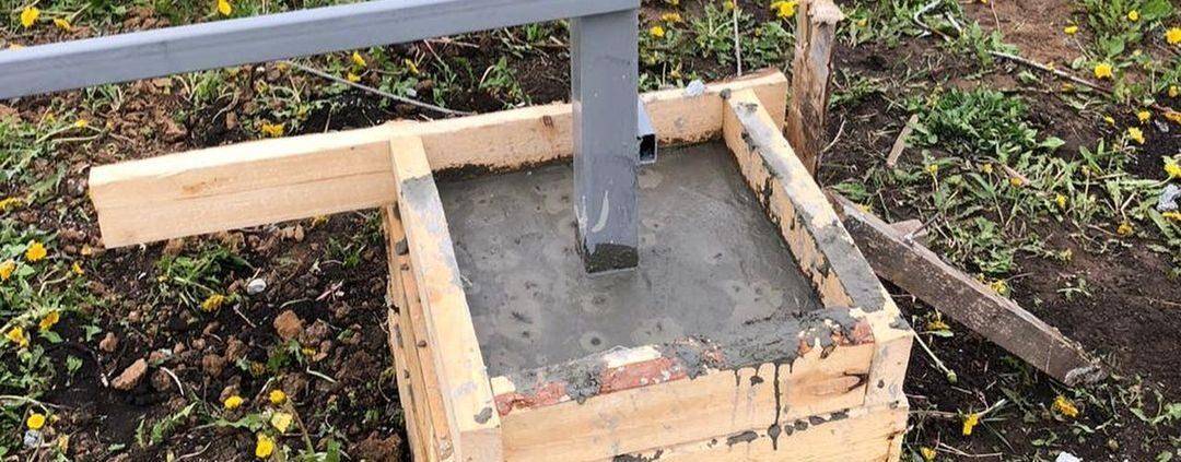 Свайный фундамент под кирпичный столб для забора с легким заполнением
