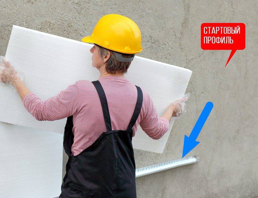 Чтобы основательно приклеить пенополистирольный утеплитель, очистите поверхность до материала утепляемой поверхности. Установите строго горизонтально стартовую планку.