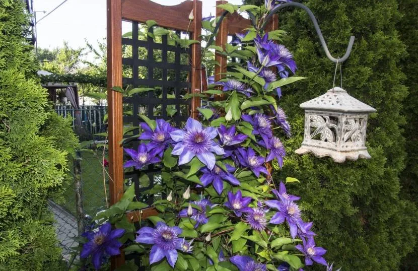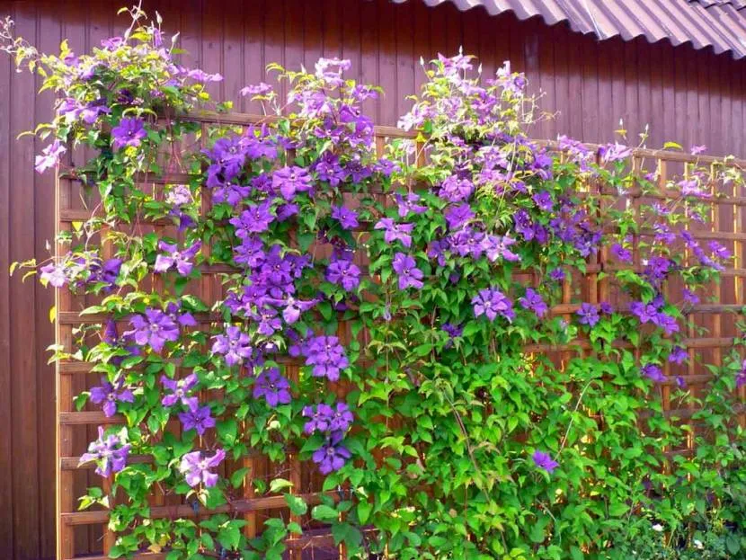 шпалере. Клематисы на шпалерах могут стать достойным украшением сада, зоны отдыха, входной группы. Шпалеры для клематисов лучше делать из дерева или металла