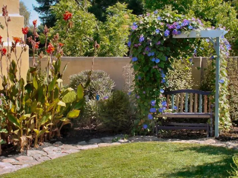 Создать уютный романтический уголок в саду, где можно уединиться в знойный полдень или прохладным вечером, скрывшись от любопытных взглядов прохожих и наслаждаясь чарующей красотой, можно с помощью шпалер.