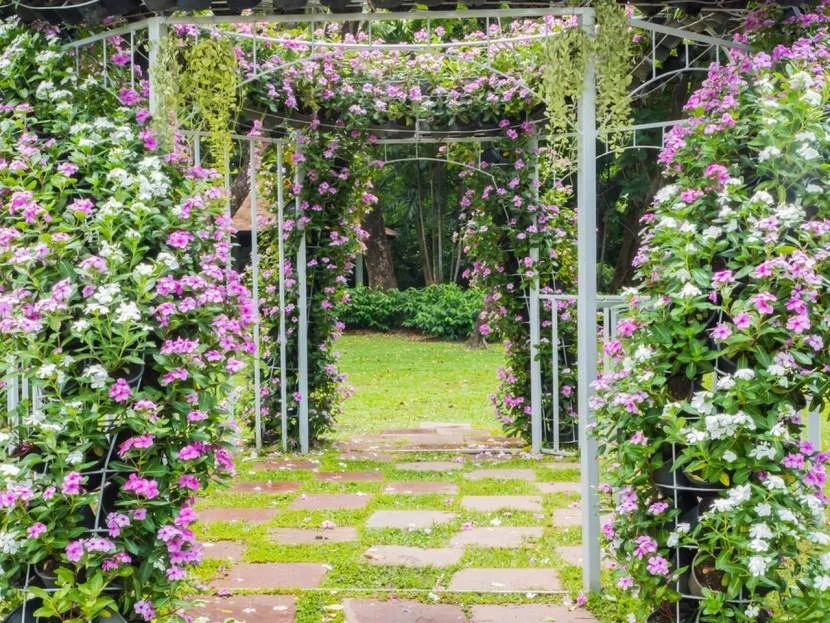 Вертикальное. Этот способ позволяет украсить практически любое место в саду. Однако для такого озеленения необходима прочная конструкция. Используют как цветы одного сорта, так и разнообразные сочетания.